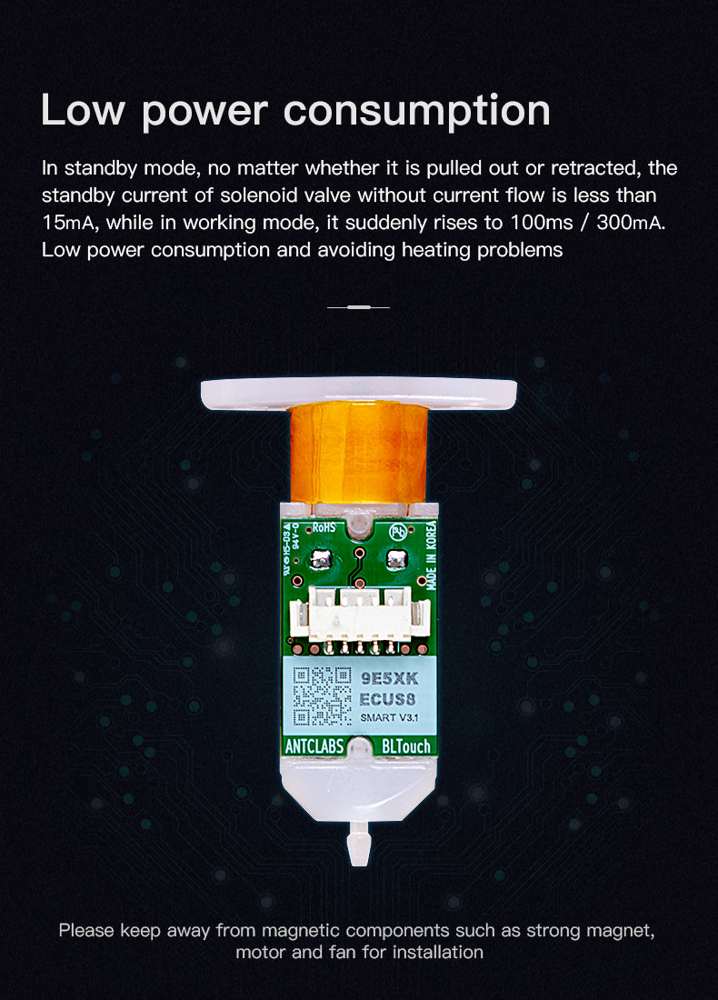 BLTouch is a type of semiconducting hall sensor and is an electronic component for 3D Printers. It precisely measures the tilt of the bed surface. It could work with any kind of bed material, such as glass, wood, metals, and so on.